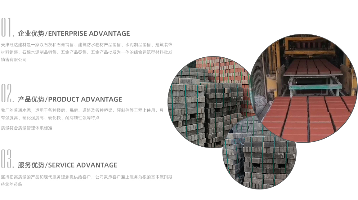 天津旺達(dá)建材是一家以沙子,水泥,加氣塊,加氣磚,面包磚,石灰和石膏銷售;建筑防水卷材產(chǎn)品銷售;建筑裝飾材料銷售;石棉水泥制品銷售;五金產(chǎn)品零售;五金產(chǎn)品批發(fā)為一體的綜合建筑型材料批發(fā)銷售有限公司,公司秉承客戶至上服務(wù)為根的基本原則期待您的蒞臨。作為專頁(yè)的建材生產(chǎn)企業(yè),我們?yōu)槟峁﹥?yōu)良的天津沙子、天津水泥和天津面包磚,肯定能滿足您對(duì)建筑材料的需求。我們天津沙子廠家的沙子粒度均勻,適用于各類建筑項(xiàng)目,從住宅到大型商業(yè)工程,都能確保工程質(zhì)量的堅(jiān)固與耐用。我們天津水泥廠家生產(chǎn)的高強(qiáng)度水泥,經(jīng)過(guò)嚴(yán)格的質(zhì)量控制,不僅具備很強(qiáng)的粘合力,還擁有優(yōu)異的耐久性,能夠適應(yīng)各種復(fù)雜的施工環(huán)境,保障建筑結(jié)構(gòu)的穩(wěn)固。我們天津面包磚廠家生產(chǎn)的面包磚系列更是以其美觀、環(huán)保、耐磨的特性,廣泛應(yīng)用于城市道路鋪設(shè)、園林景觀建設(shè)等項(xiàng)目,提供持久的美觀與功能性。我們堅(jiān)持綠色環(huán)保理念,所有產(chǎn)品均通過(guò)嚴(yán)格的環(huán)保檢測(cè),力求為您提供相對(duì)高...